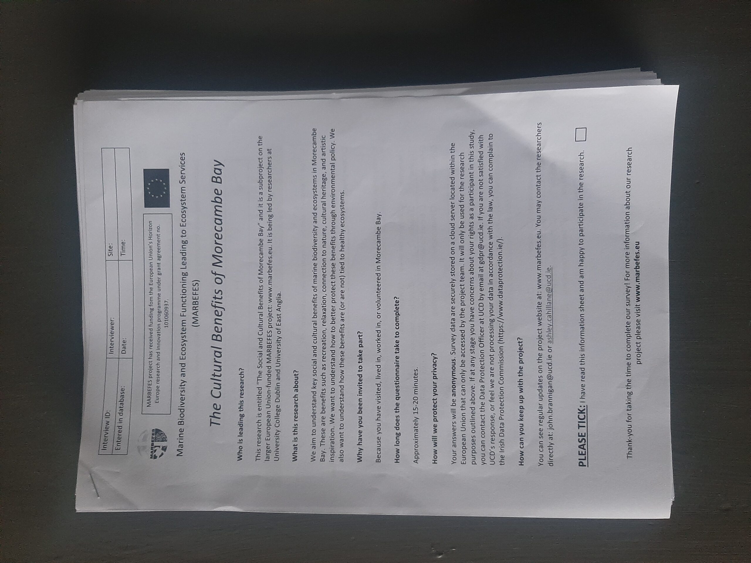 - Paper surveys, and/or an online platform for survey distrubution and data collection (e.g. SurveyMonkey or EUSurvey).