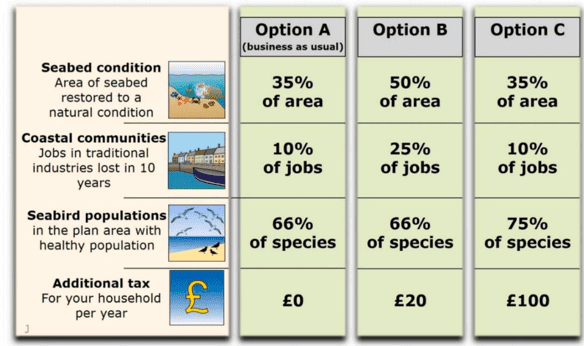 - Output: Willingness to pay (WTP) for a change in an environmental attribute or a scenario.